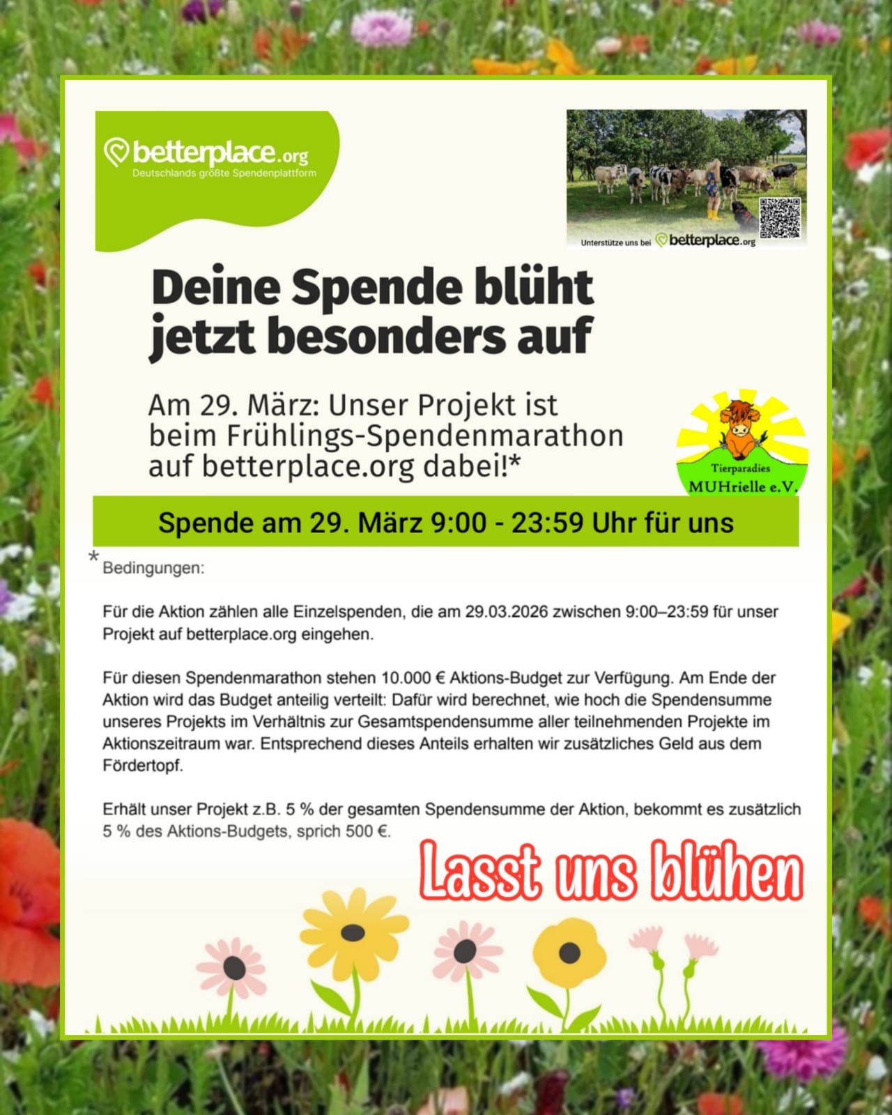 Um die Zukunft der MUHrielle-Tiere dauerhaft sicherzustellen, benötigen wir vor allem Patenschaften sowie Spenden 🙏 Gemeinsam mit Euch können wir viel erreichen!