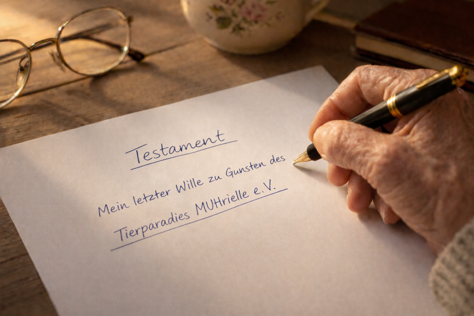 Du setzt das Tierparadies MUHrielle e. V. als Erben oder Miterben ein.Vermächtnis: